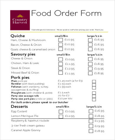 FREE 17 Sample Food Order Templates in PDF MS Word MS Excel
