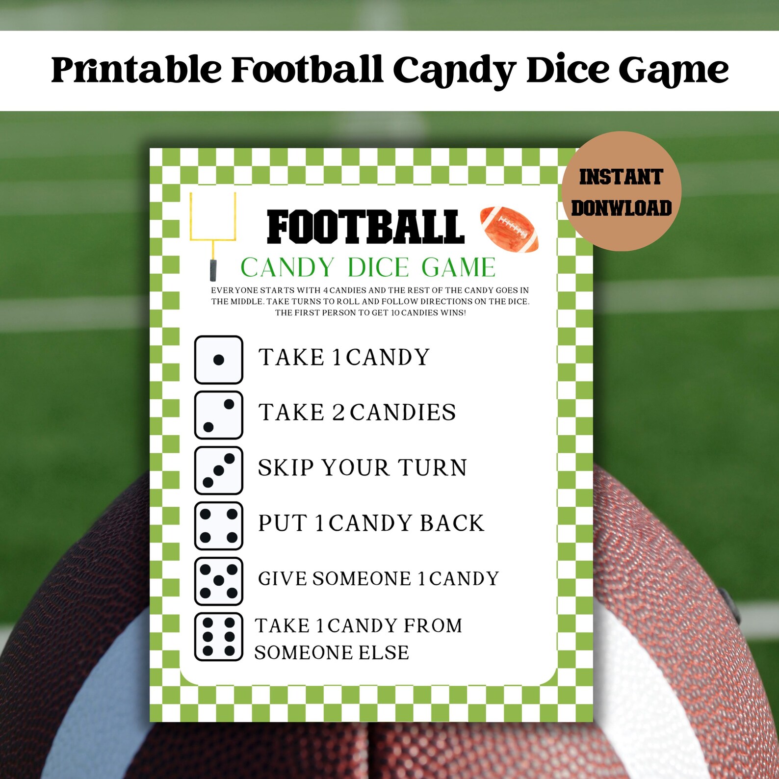 Printable Football Party Games Football Candy Dice Game Football