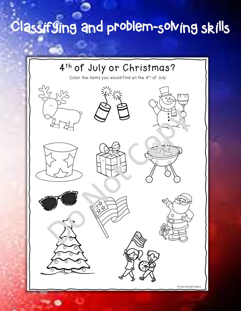 4th of July Themed Preschool Worksheets Etsy