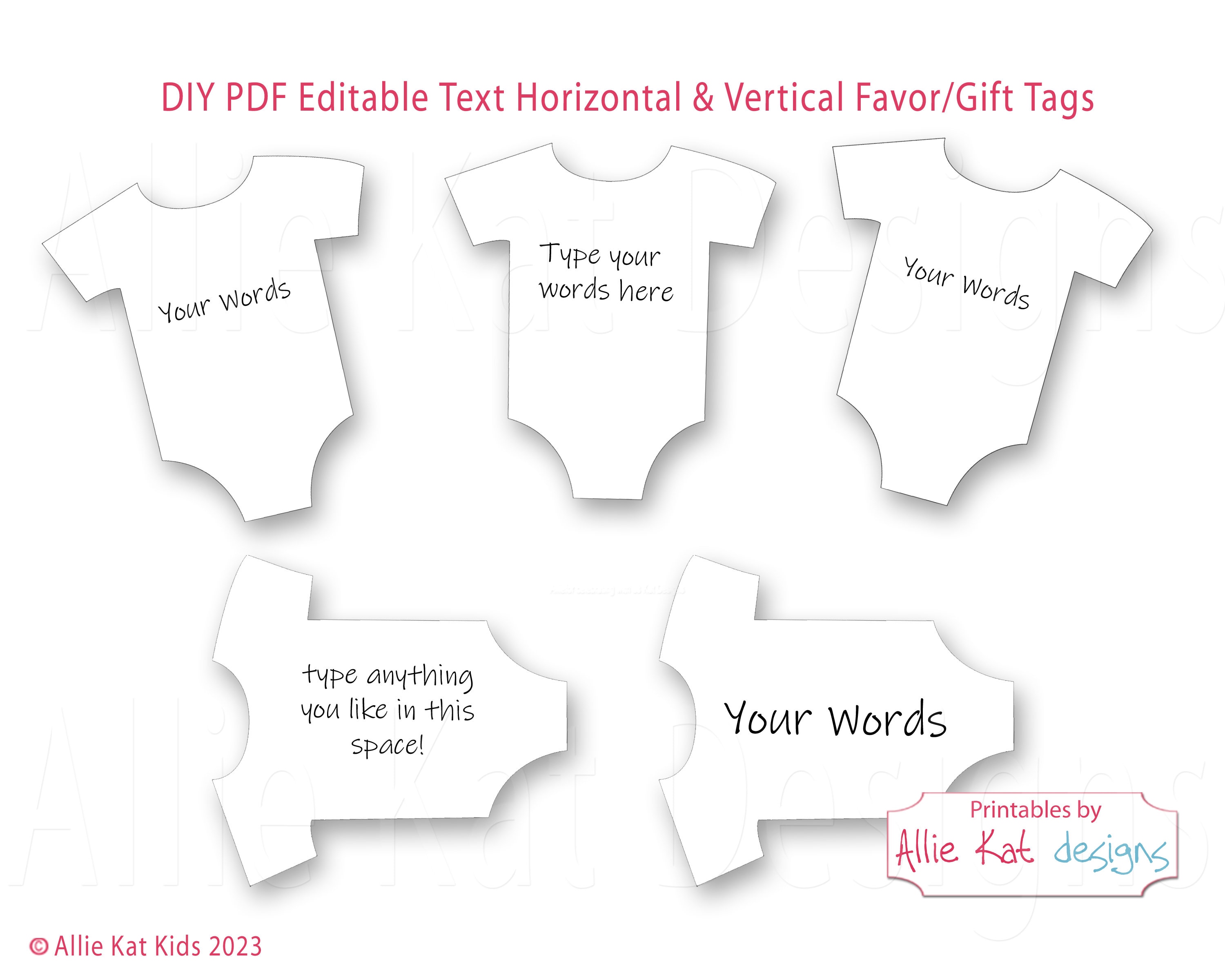 Editable Onesie Gift Tag Favor Tag Template Gender Neutral Baby Shower
