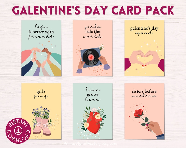 Printable Galentines Day Card Pack Digital Download Galentines Day