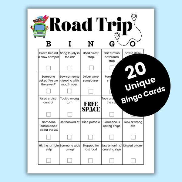 Bus Trip Bingo Etsy