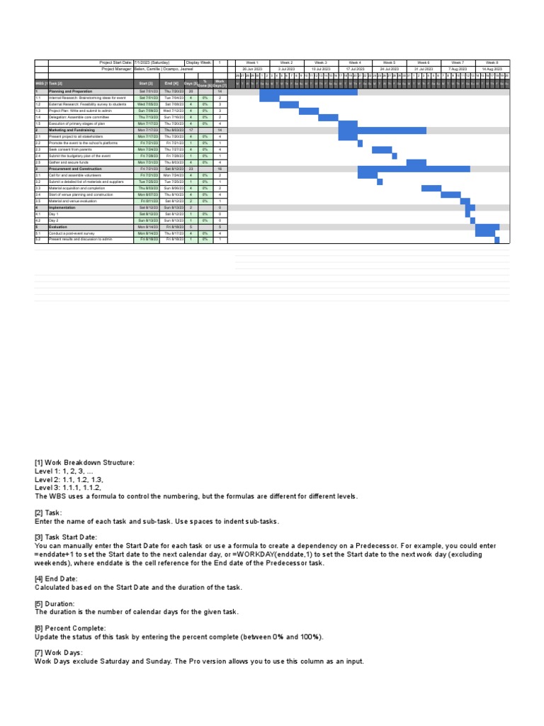 Printable Gantt Chart Template in Excel Google Sheets Download