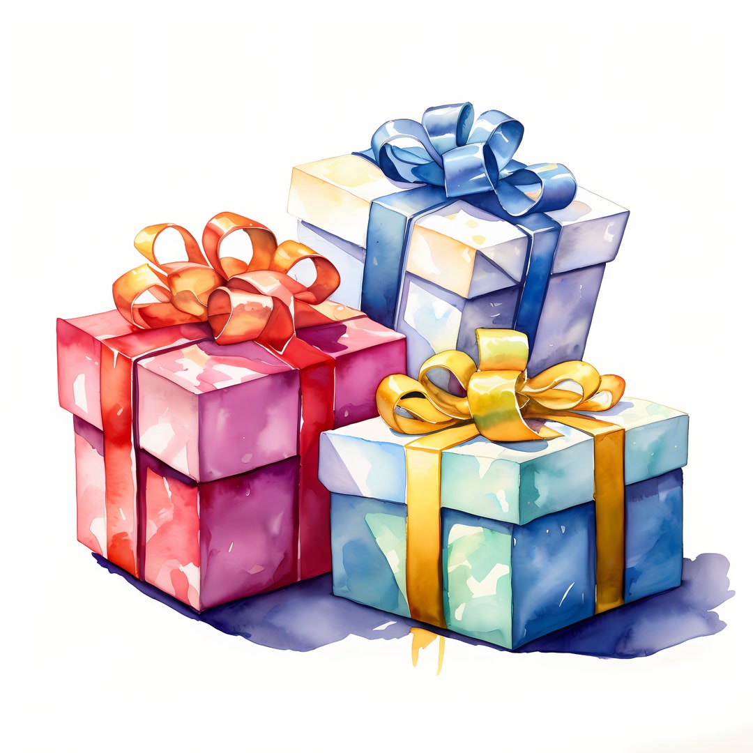 Watercolor Gift Boxes Clipart: Printable Wrapped Presents (jpgs
