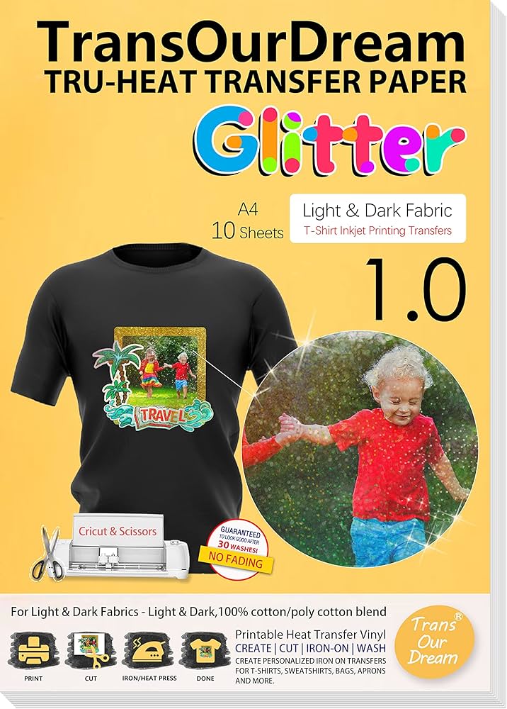 TransOurDream Tru Glitter Transfer Paper Printable Inkjet Vinyl HTV 10
