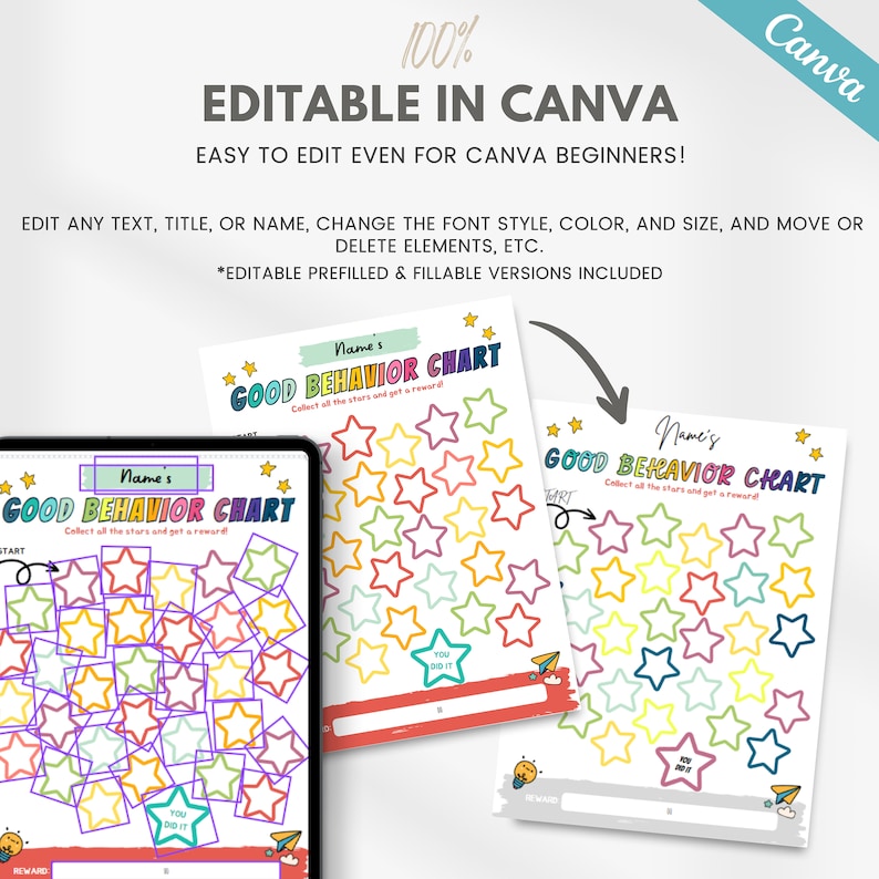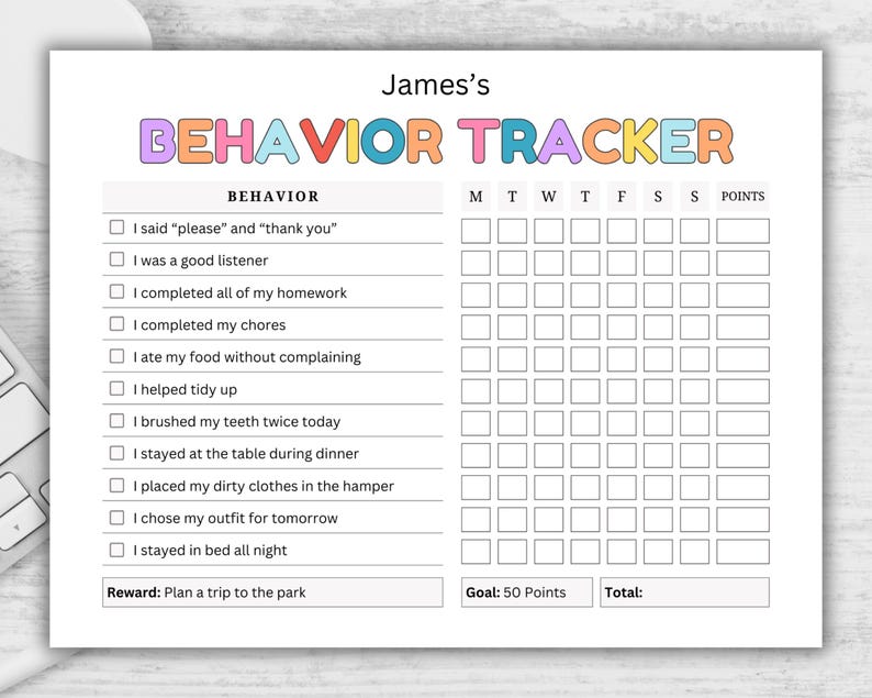 Behavior Reward Chart for Kids Printable Editable Good Behavior