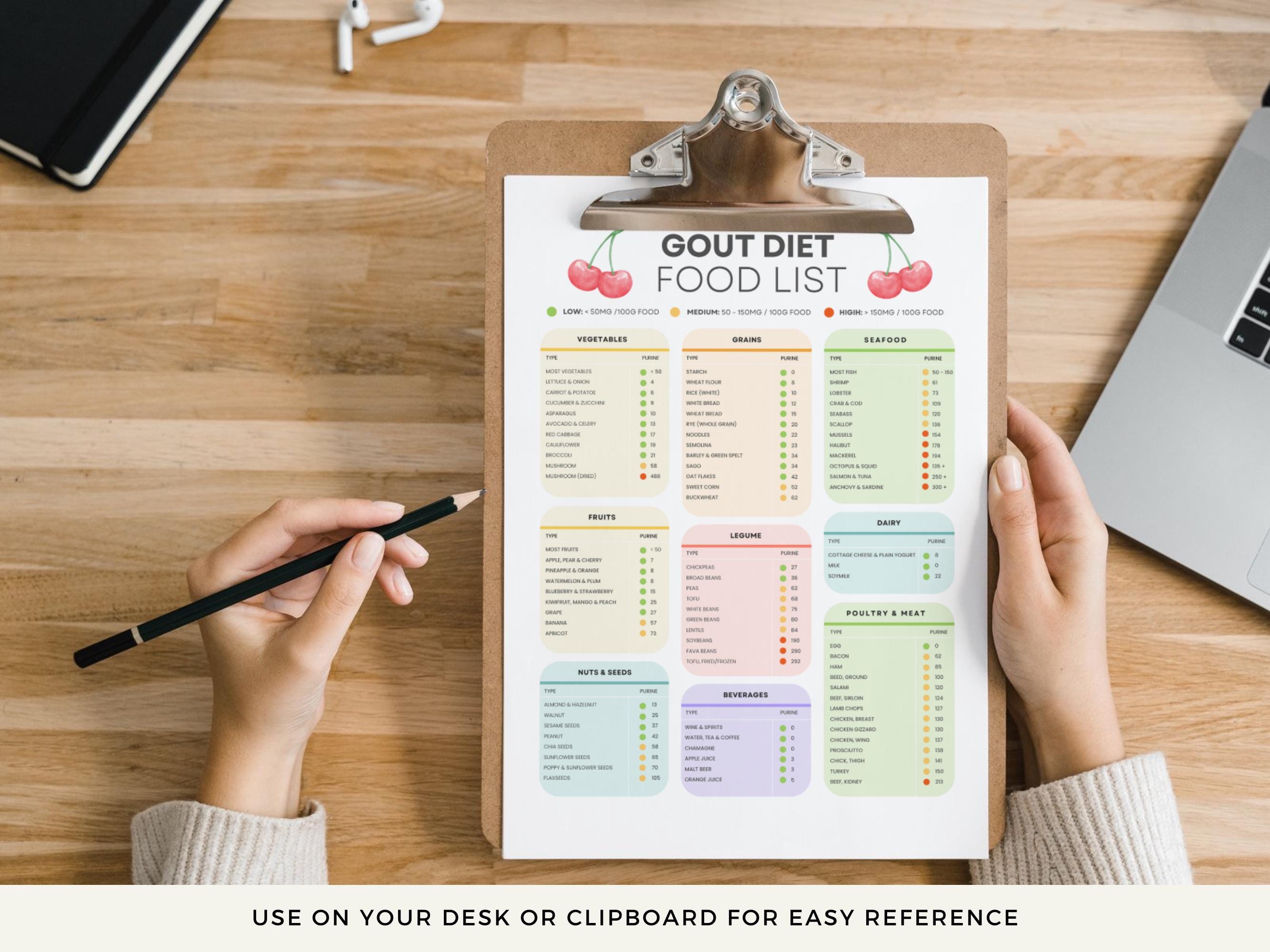 Gout Food List: Printable Gout Food Chart Bonus Weekly Gout Diet