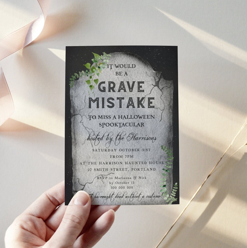 Tombstone Halloween Invitation Template Printable Gravestone Etsy