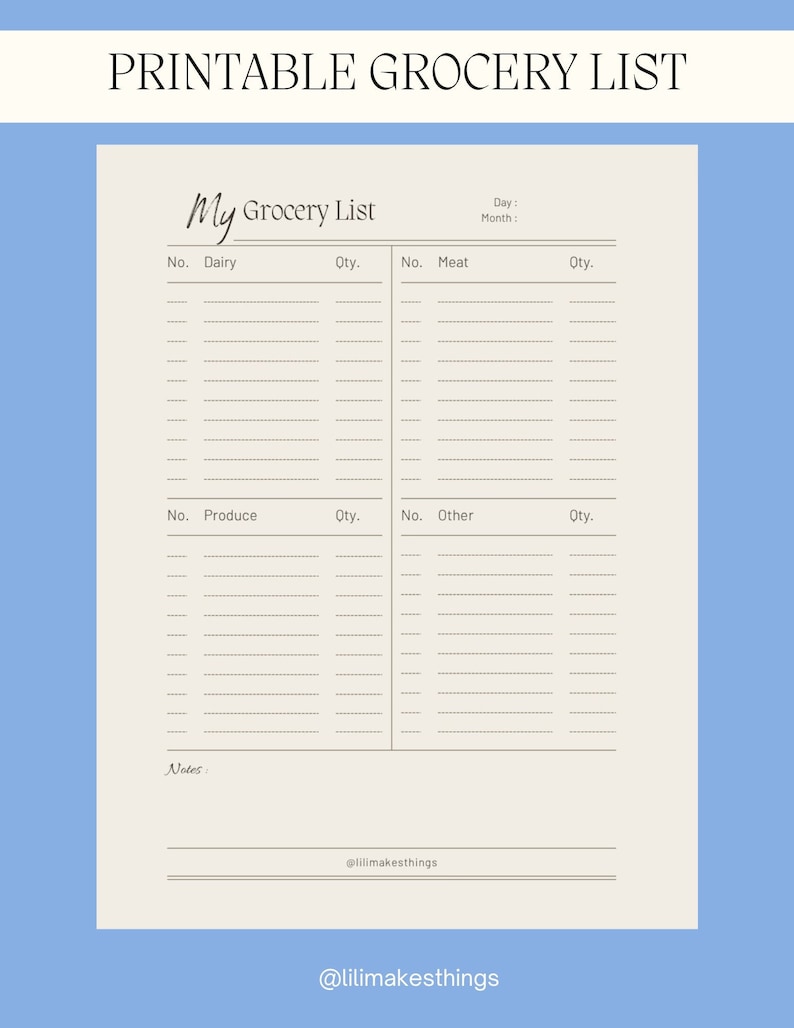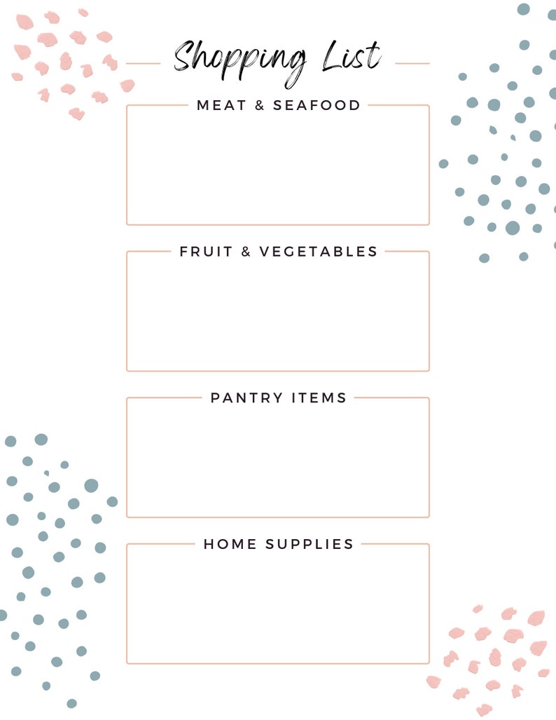 Printable Grocery Shopping List Instant Download Etsy