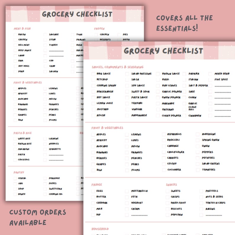 Grocery List Printable Pdf Checklist