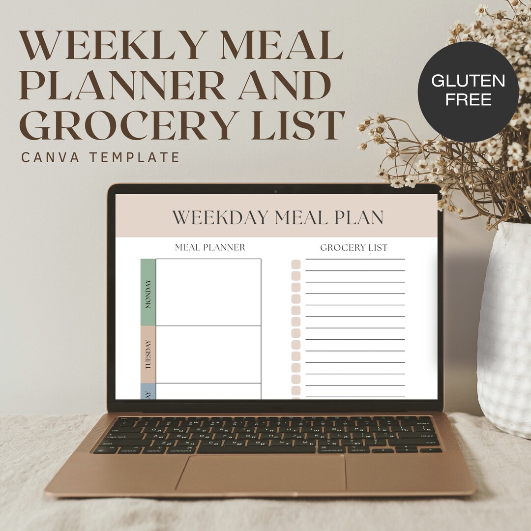 Weekly Meal Planner and Grocery List INSTANT DOWNLOAD Canva