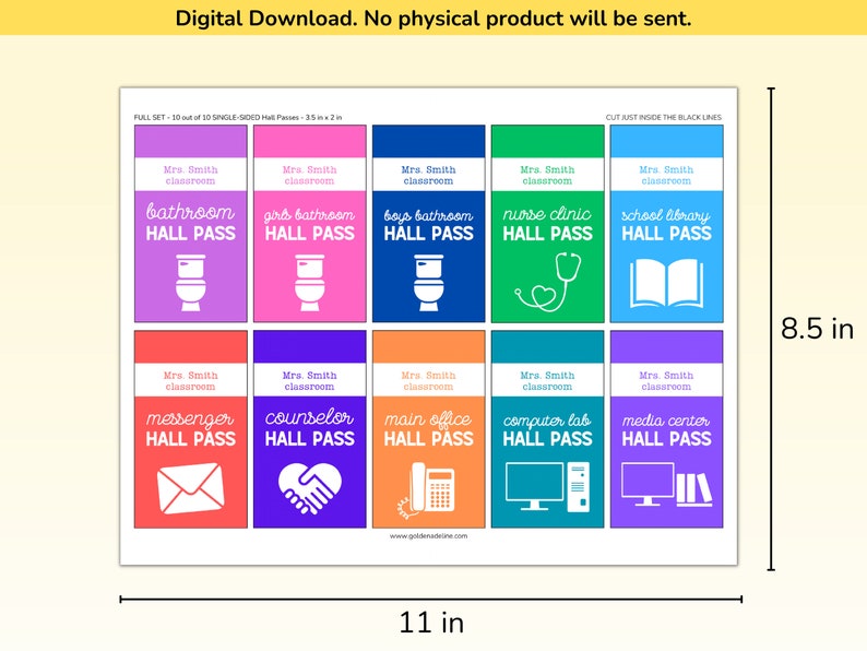Printable Hall Pass Set of 10 Personalized Teacher Hall Pass Etsy