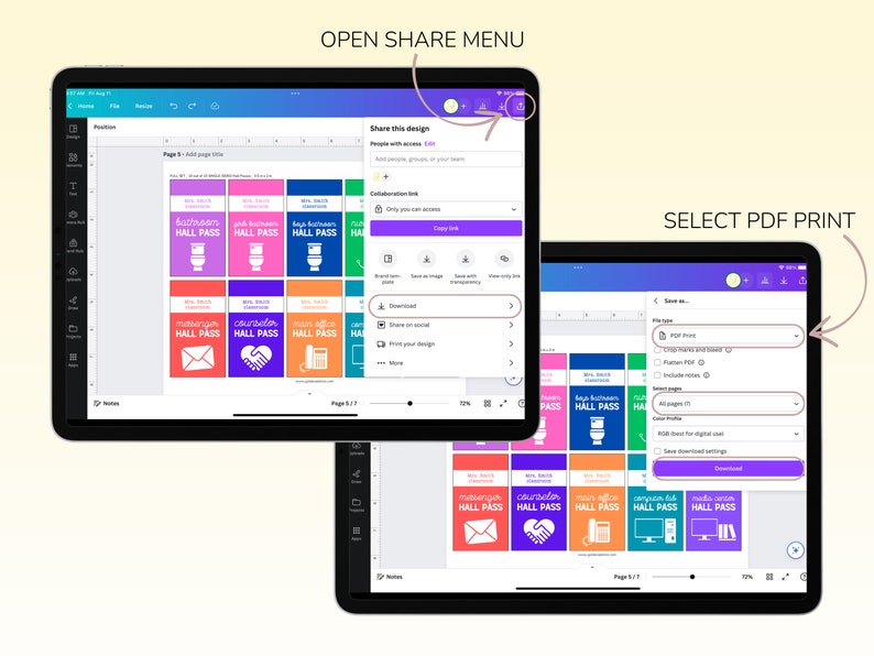 Hall Pass Printable Template For Teachers Classrooms Etsy Fillable