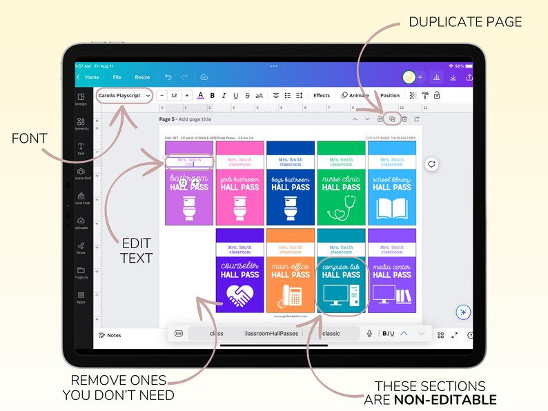 EDITABLE School Hall Pass Tags Printable Hall Pass Tags Etsy