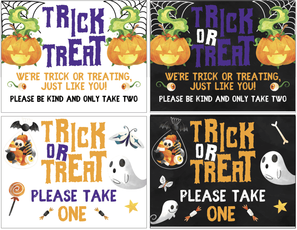 Free Printable Trick or Treat Signs FREE Printable HQ
