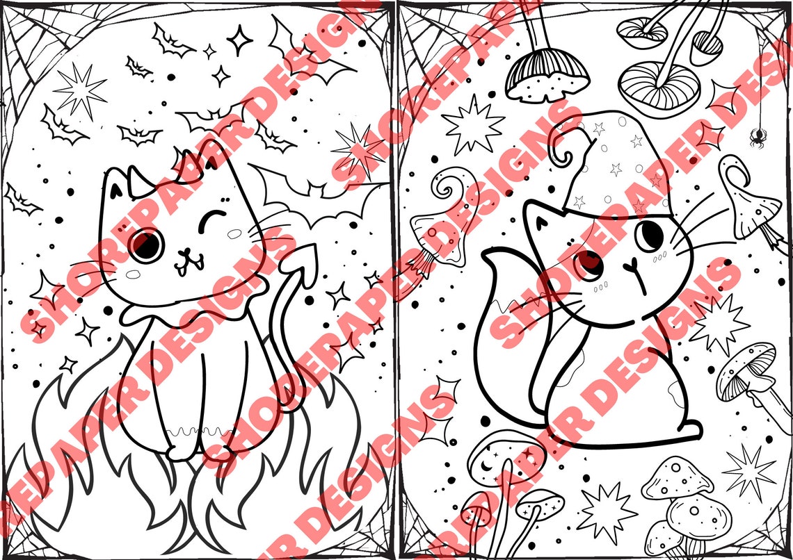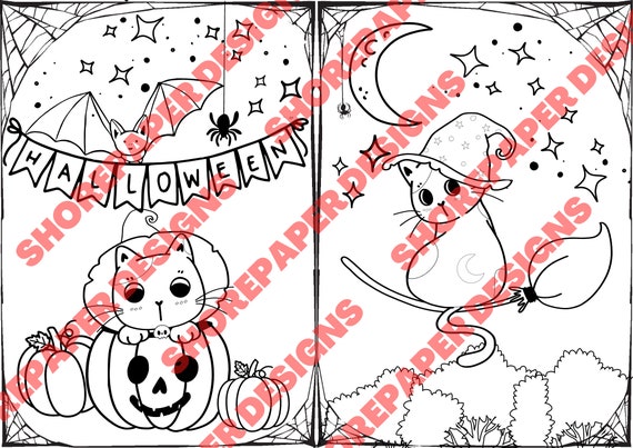 Printable Halloween Cats Colouring Pages Halloween Cat Etsy