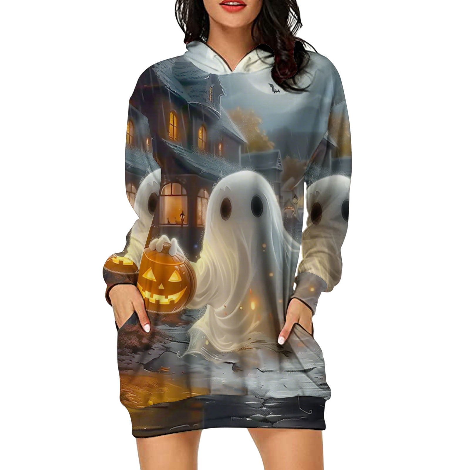 Ghost Graphic Dress for Women Halloween Hoodies Costume Spooky Cute