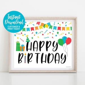 Happy Birthday Sign Printable Colorful Birthday Poster Yard Sign