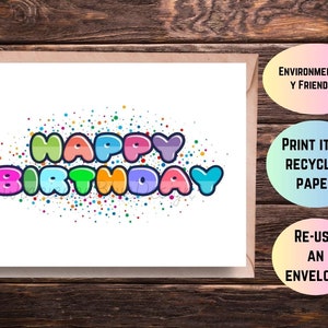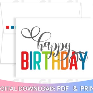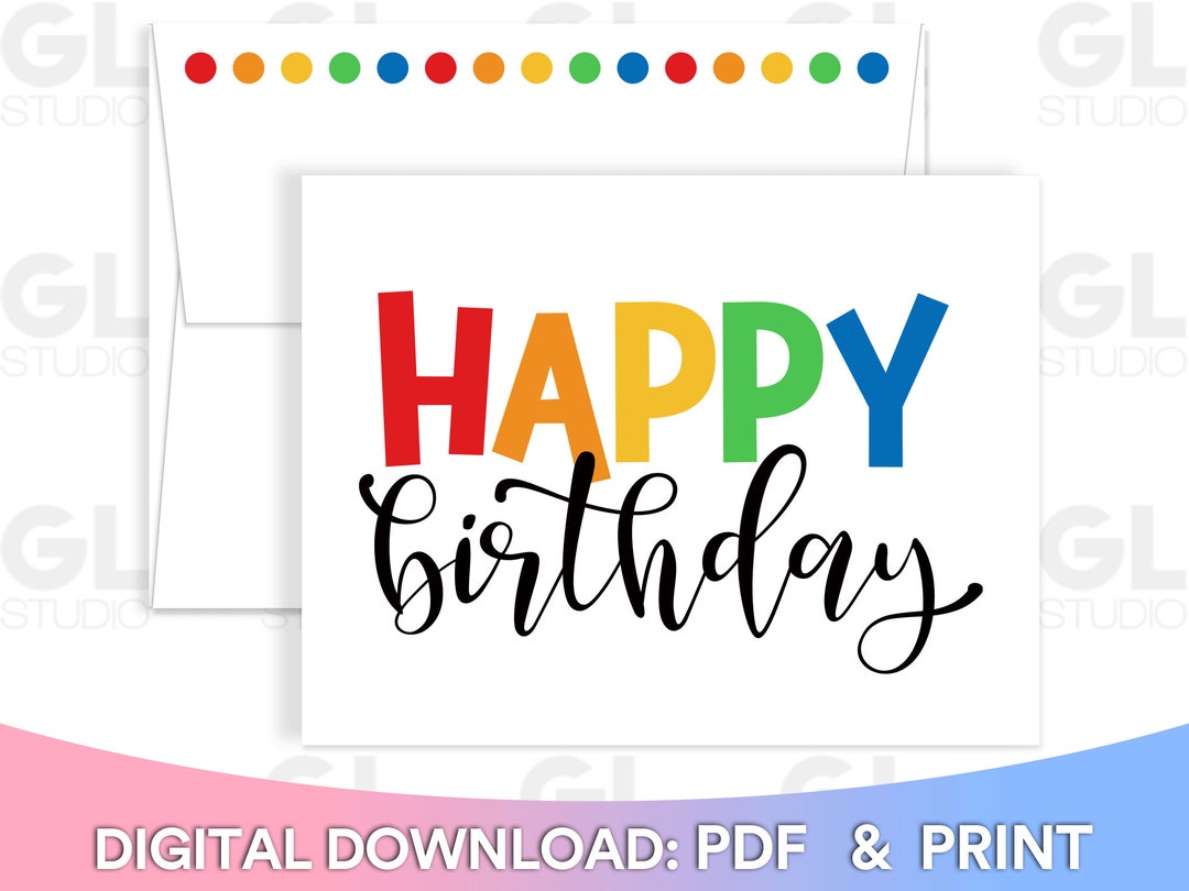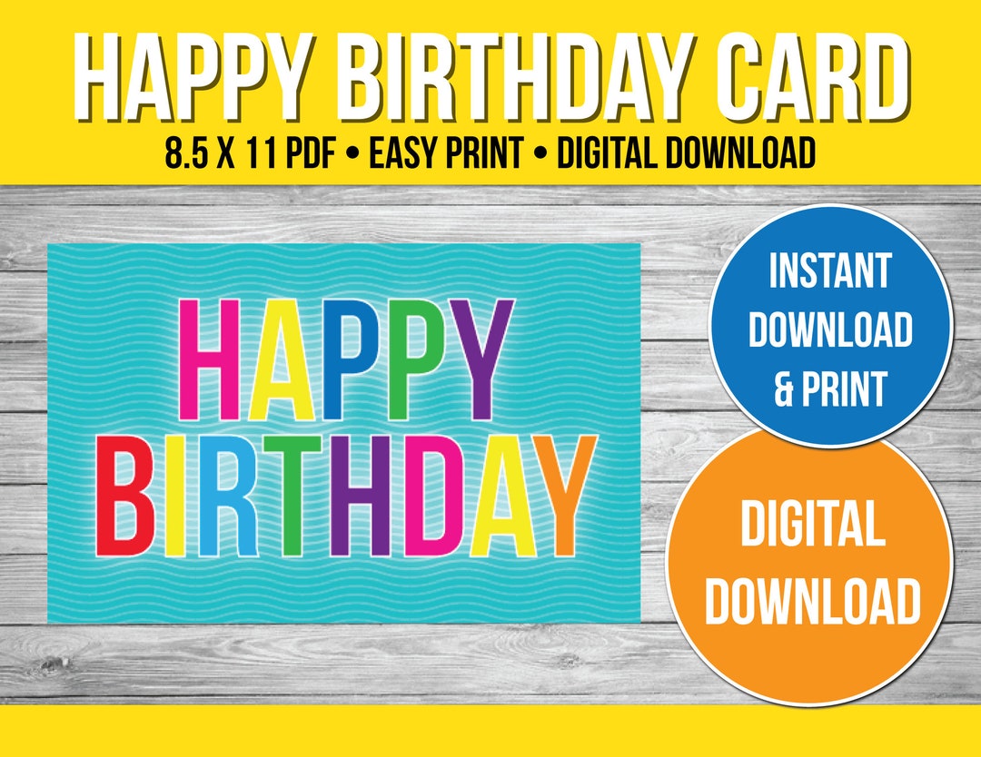 Happy Birthday Printable Card Instant Download PDF Color Birthday Card