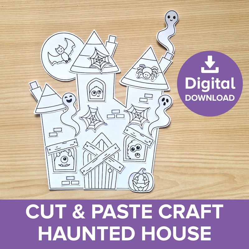 Haunted House Paper Craft Template Printable Halloween Activity for