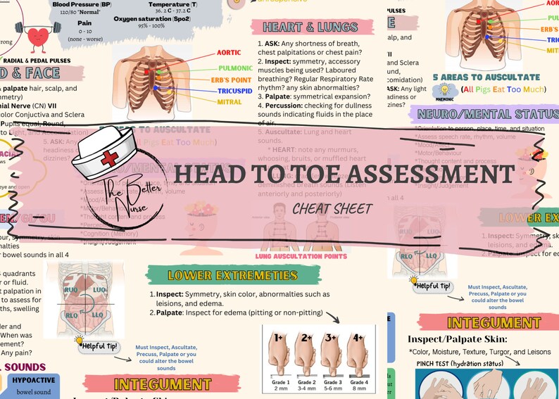 Head to toe Assessment Cheat Sheet PDF Digital Nursing Study Etsy in
