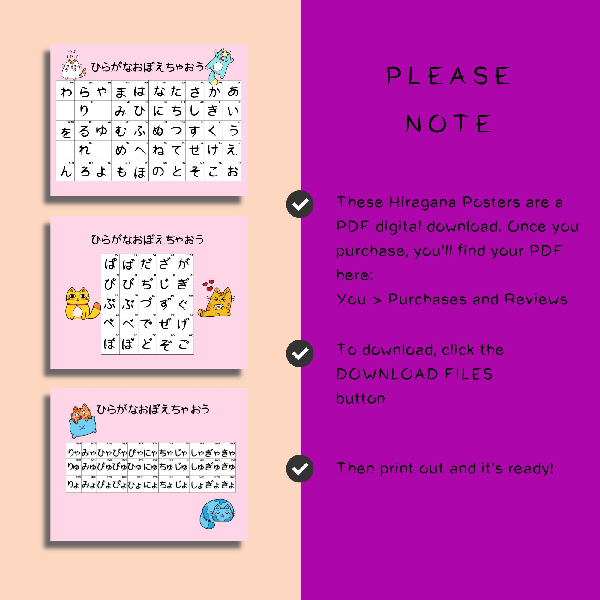 Japanese Hiragana Chart Printable PDF Hiragana Poster for Language