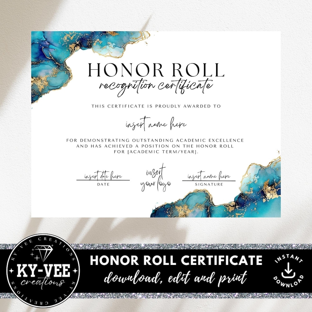 Printable Honor Roll Certificates INSTANT DOWNLOAD Certificate of