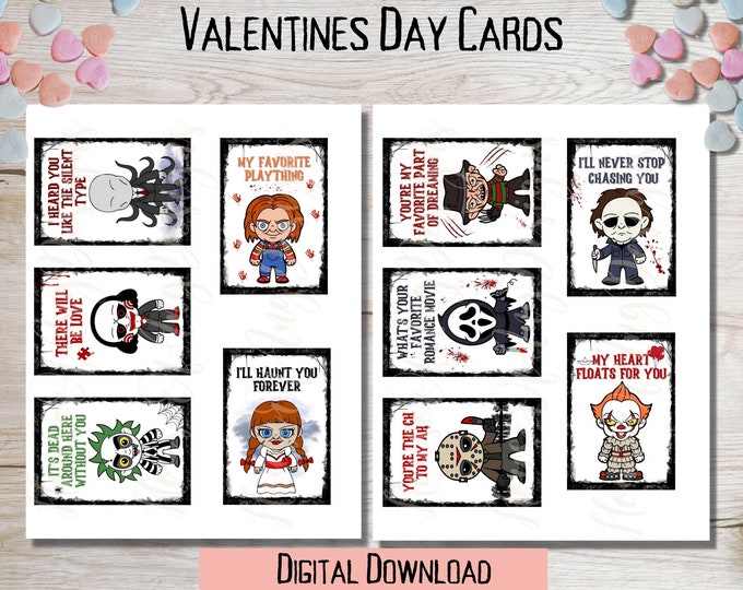 Horror Characters Valentine #39 s Day Cards Printable Instant Download