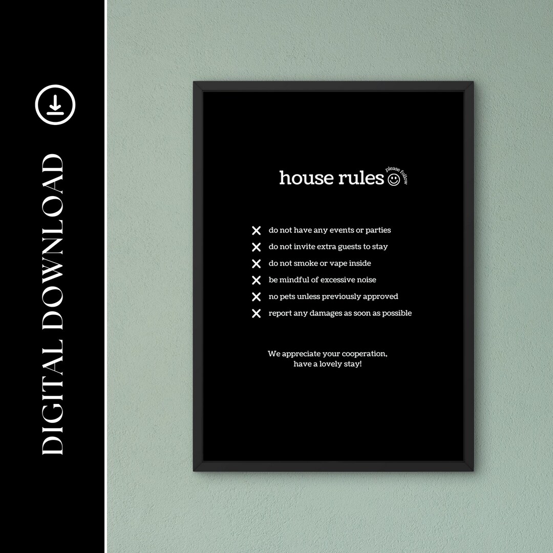 House Rules Sign Airbnb Superhost Digital PDF JPG Etsy