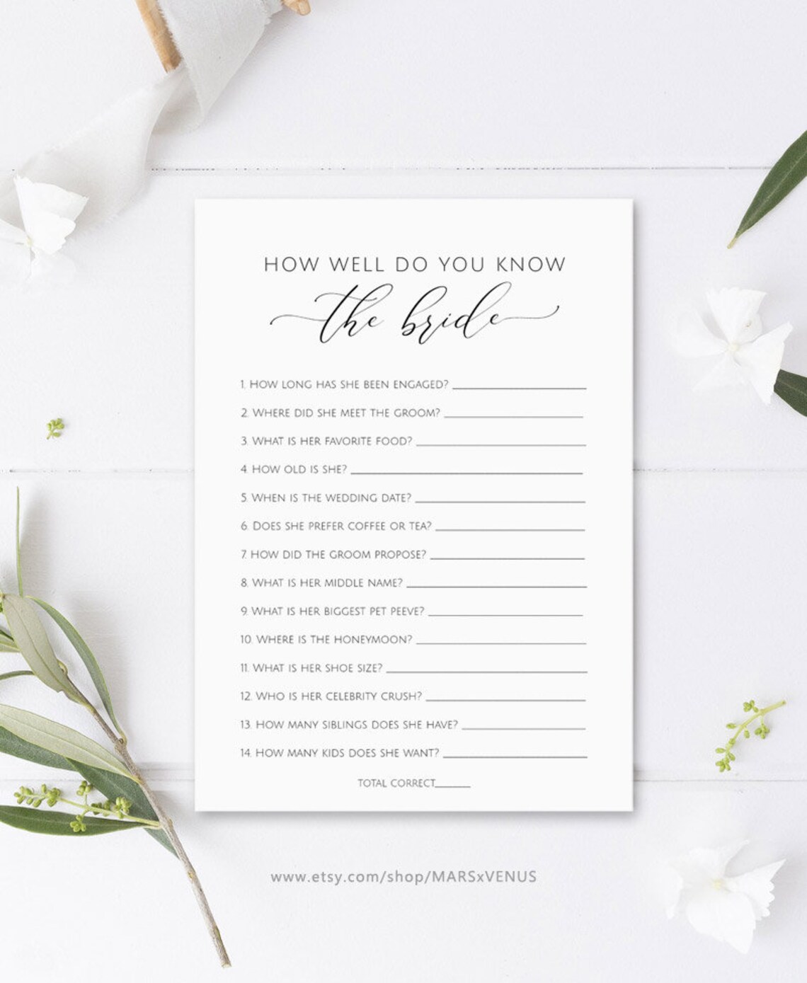 Personalized Printable How Well Do You Know The Bride Game Floral