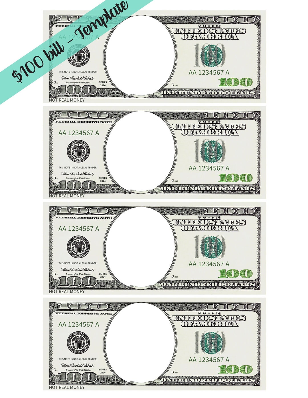 100 Dollar Bill Template