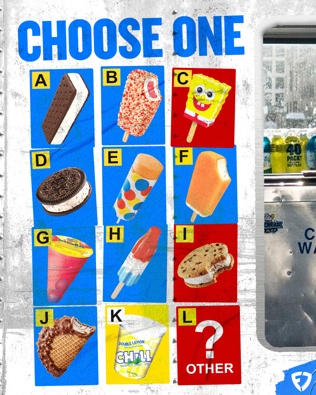 Ice cream truck menu Mint chocolate chip ice cream Strawberry ice