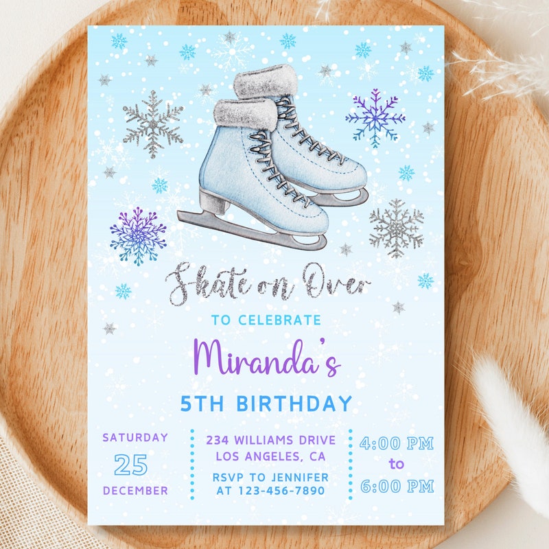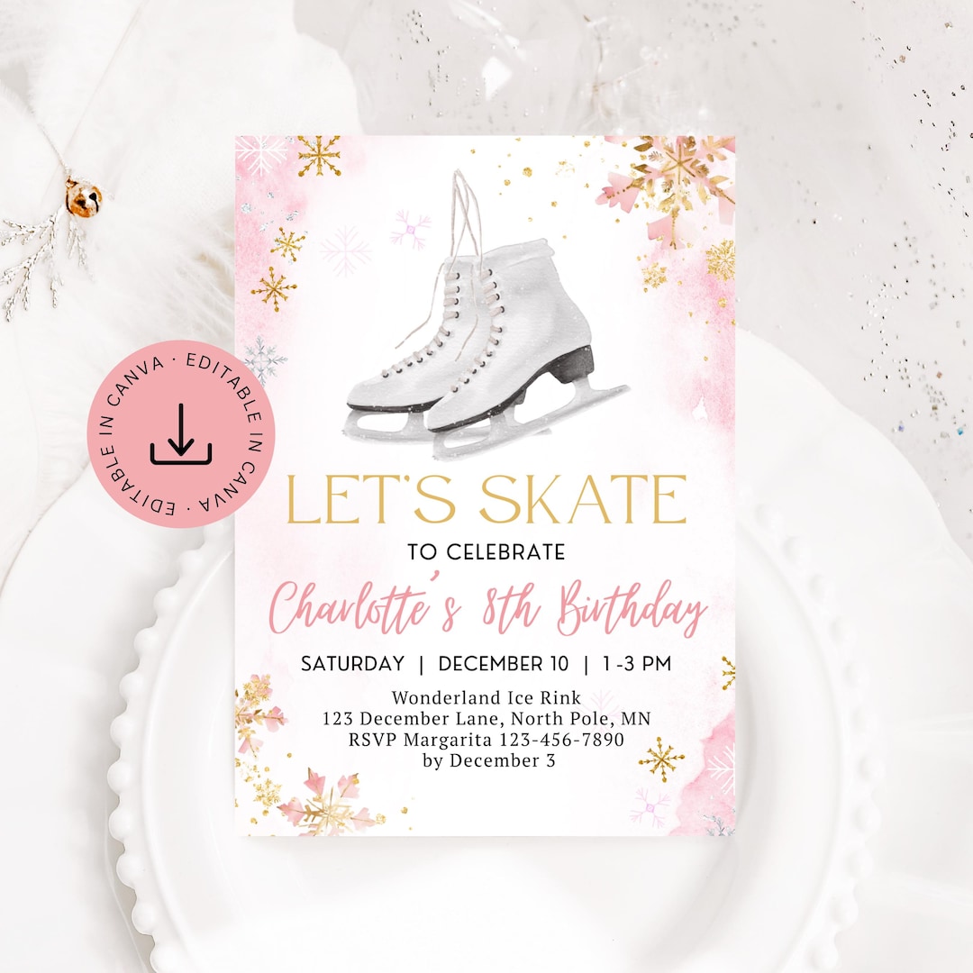 Ice Skating Birthday Invitation Editable: Printable 5x7 Winter Girl