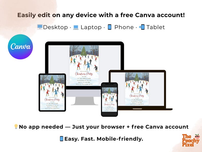 Editable Ice Skating Christmas Party Invitation Template Winter