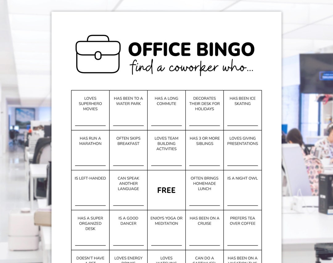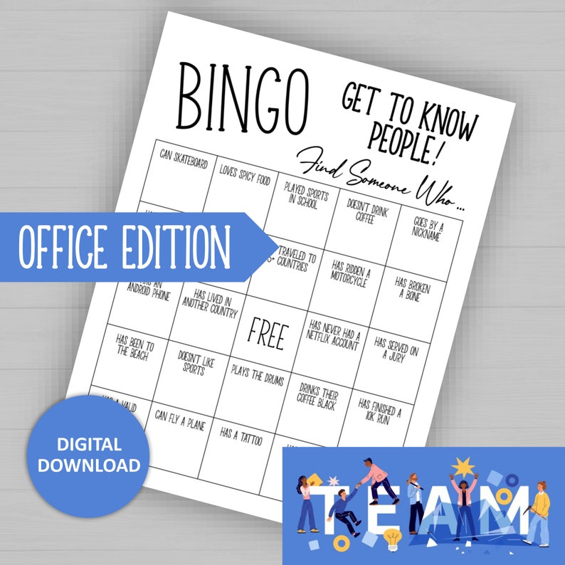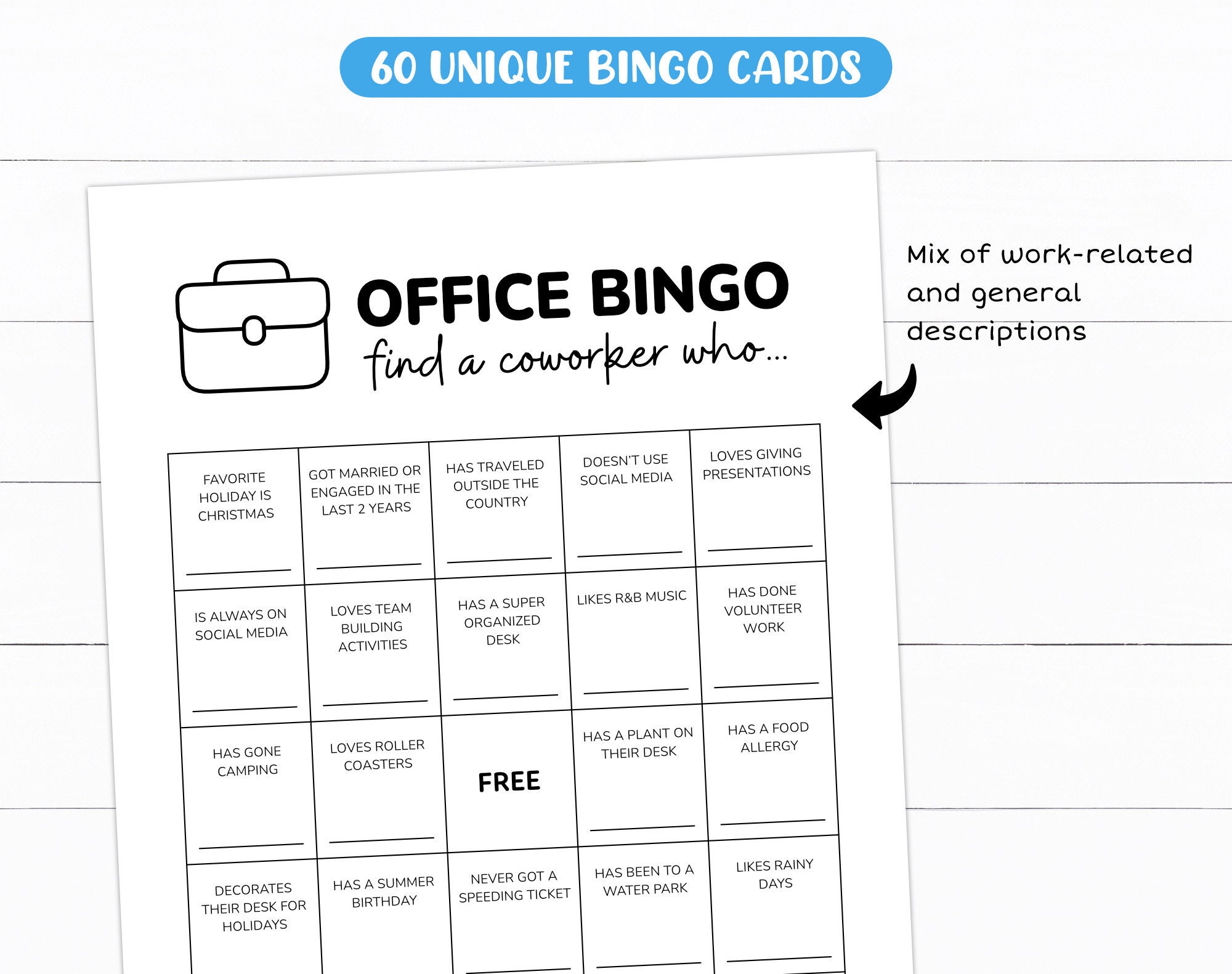 Office Get to Know You Bingo Icebreaker Game for Work Employee Mix and