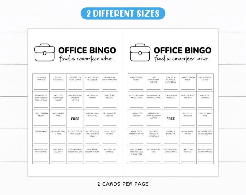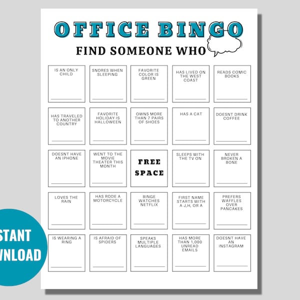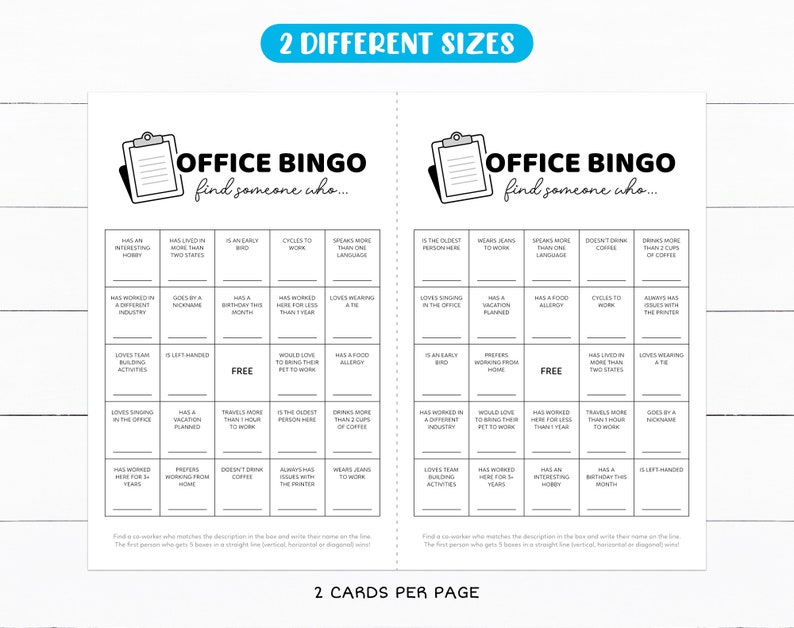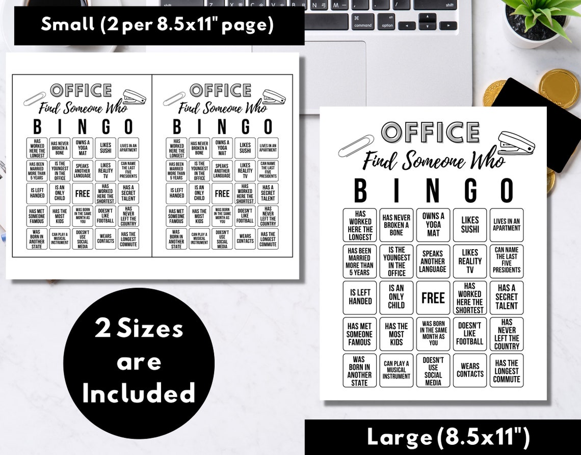 Office Find Someone Who BINGO Printable Workplace Game 2 Sizes Large