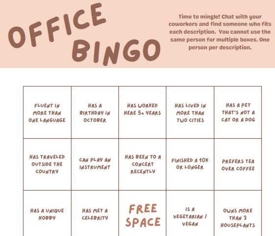Free Office Bingo Human Scavenger Hunt Game Printable for Coworkers at