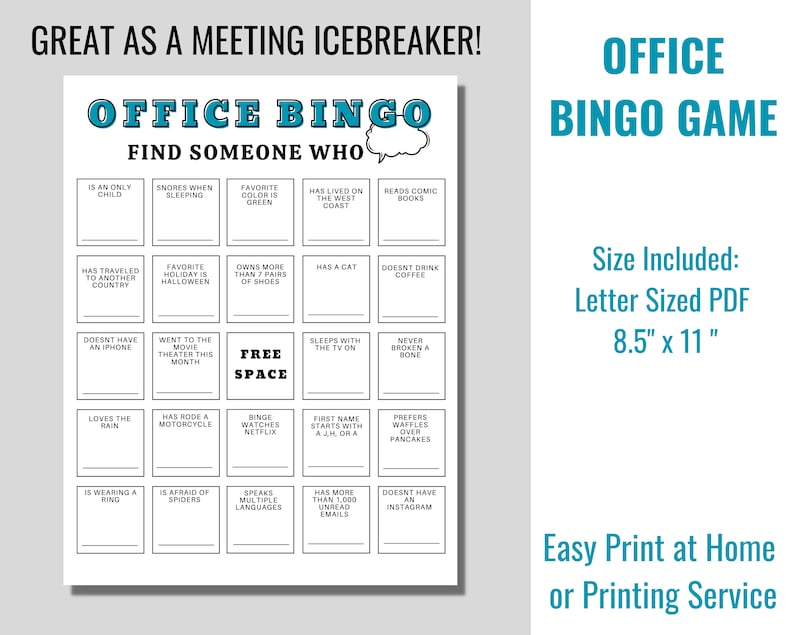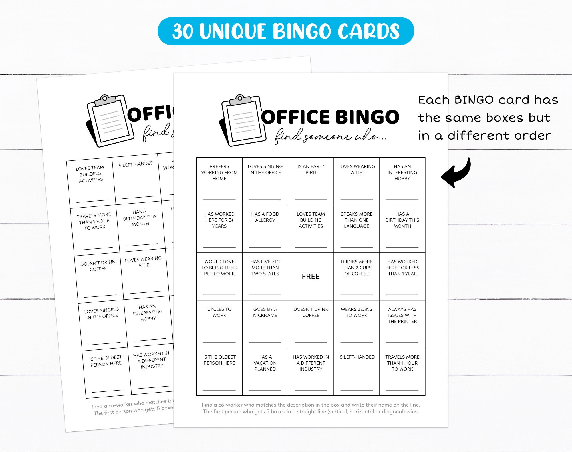 Printable Office Mix and Mingle Bingo Game to Play at a Etsy