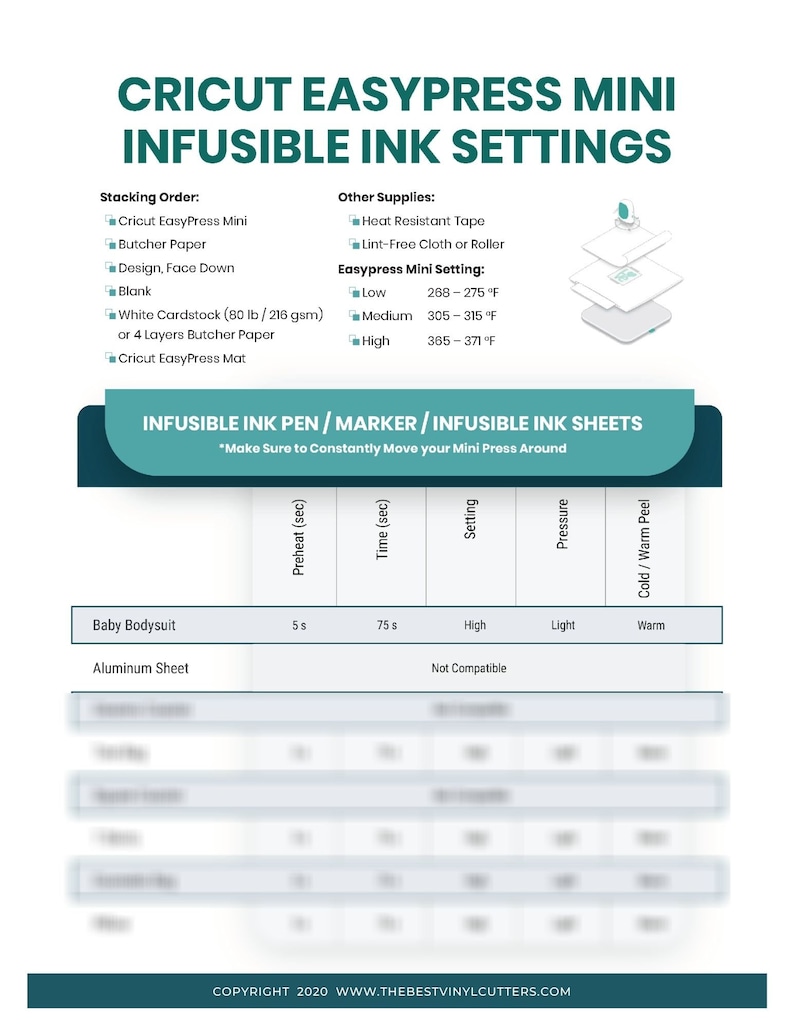 Printable Cheat Sheets for Easypress Heat Setting When Using Cricut