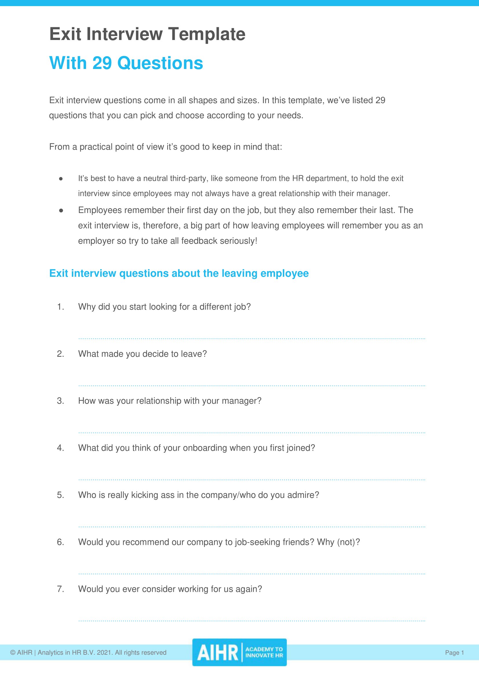 Printable Interview Questions Template