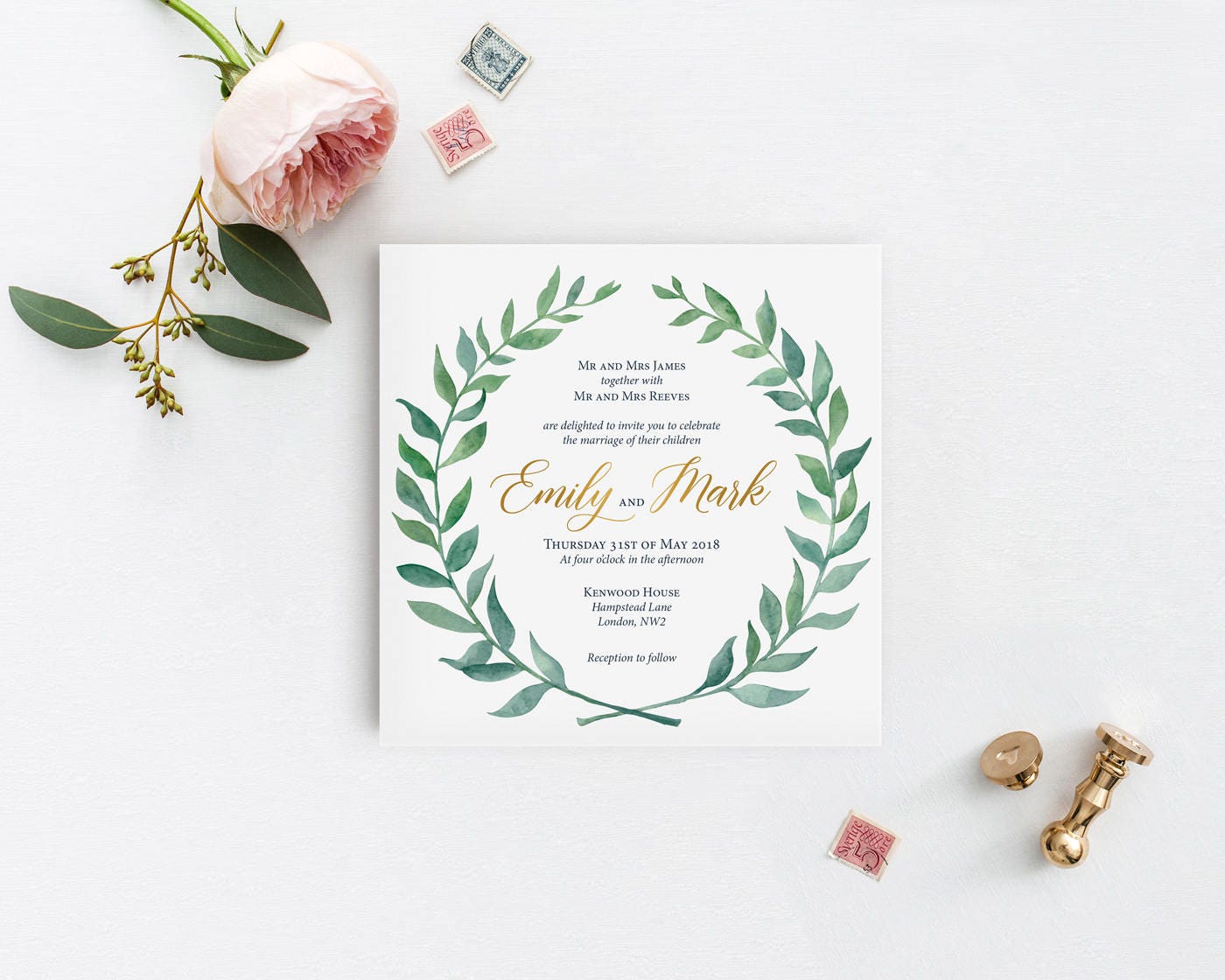 Printable Wedding Invitation Template Boho Watercolor Wreath Wedding