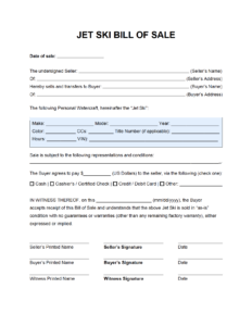 Prepare Your Jet Ski Bill of Sale With Our Printable Template