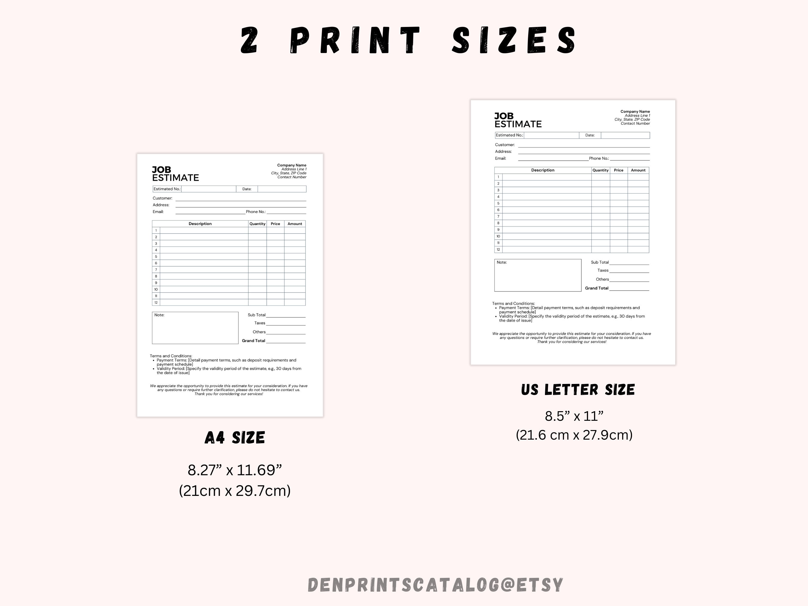 Job Estimate Template Printable Job Estimate Template PDF Etsy