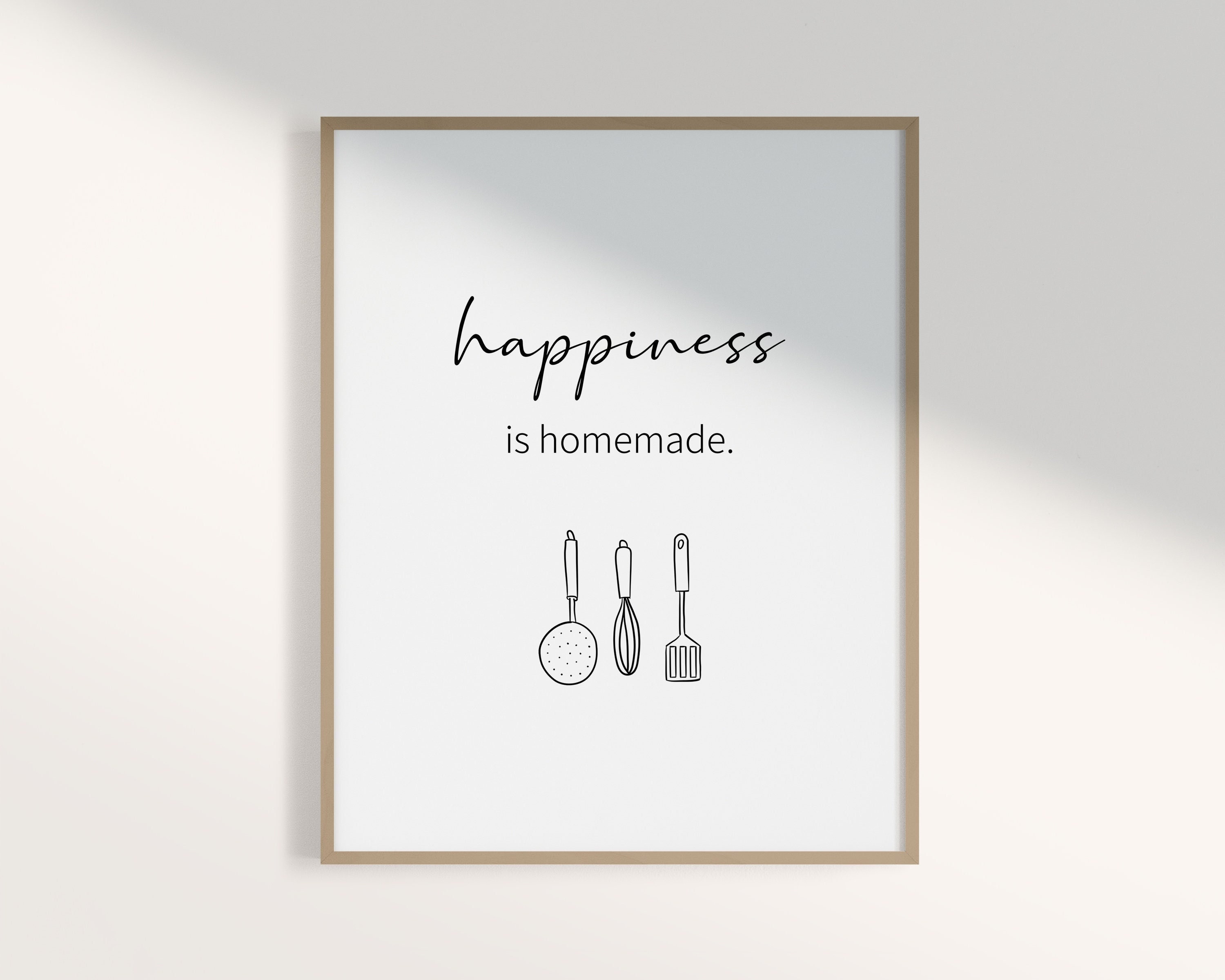 Printable Kitchen Quotes Black and White Prints Happiness is
