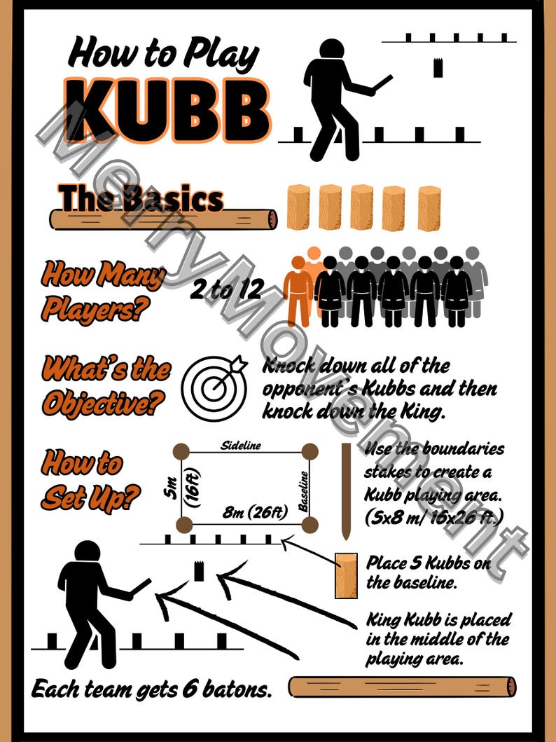 How to Play Kubb? Rules Poster Lawn Games Kubb Illustrated Poster