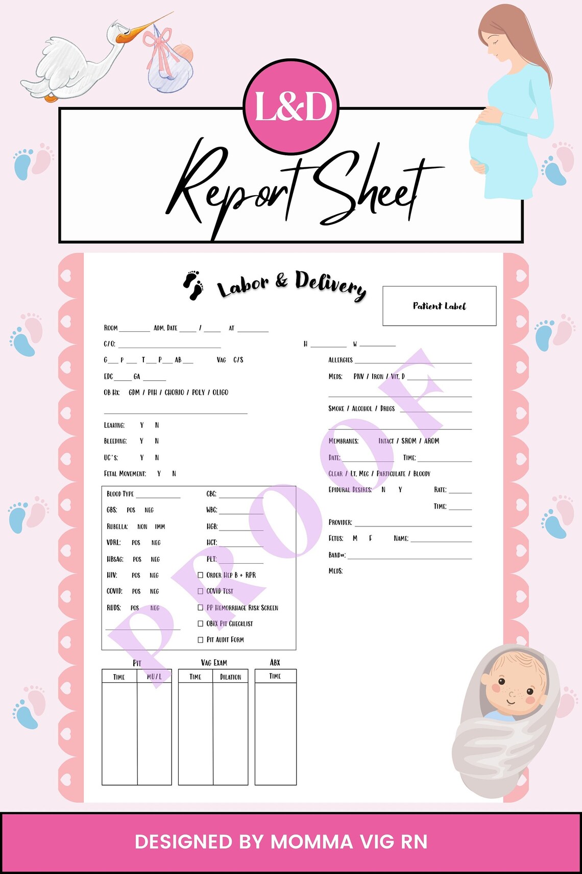 Labor and Delivery RN Report Sheet Template Printable PDF Digital