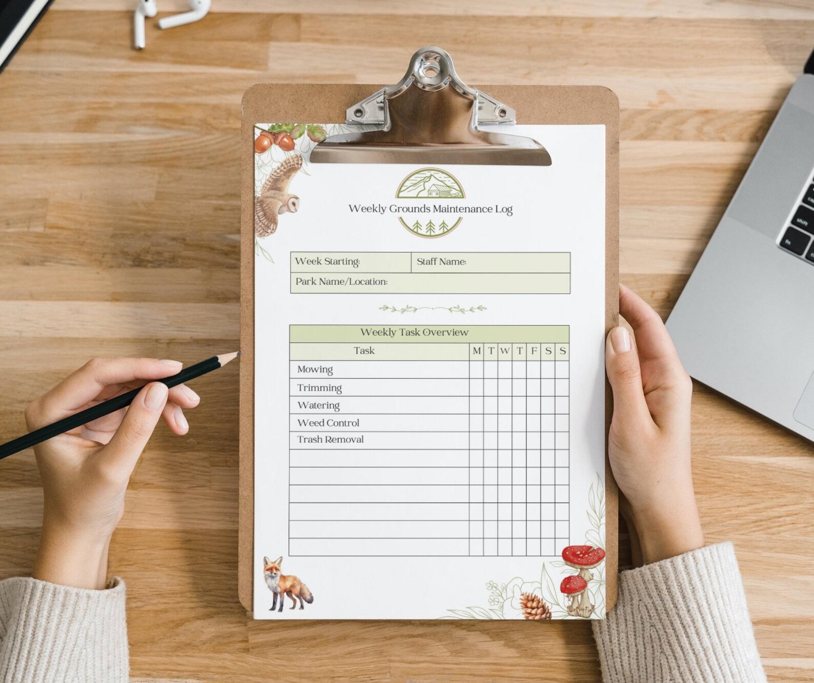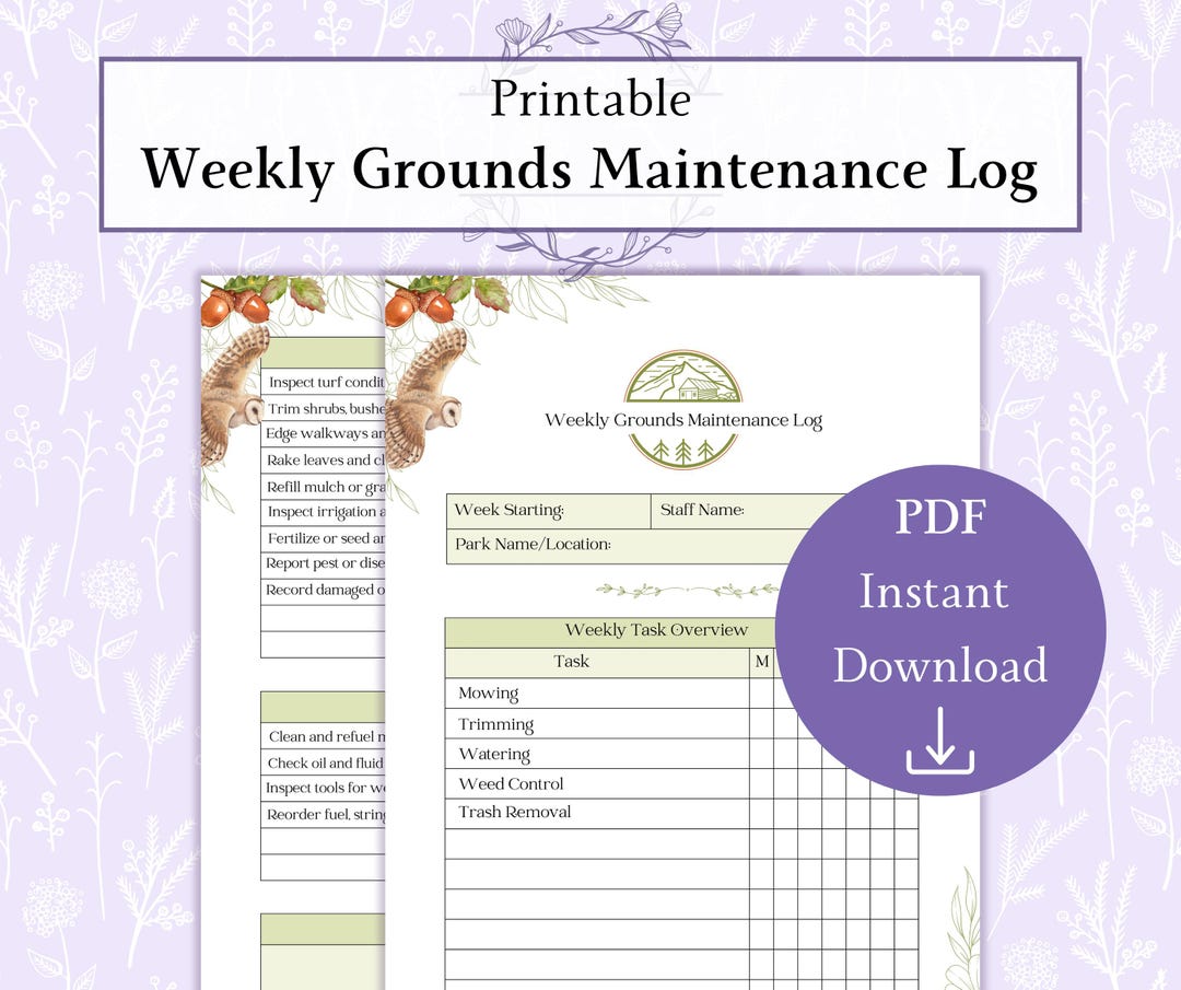 Weekly Grounds Maintenance Log Printable PDF Landscape Maintenance