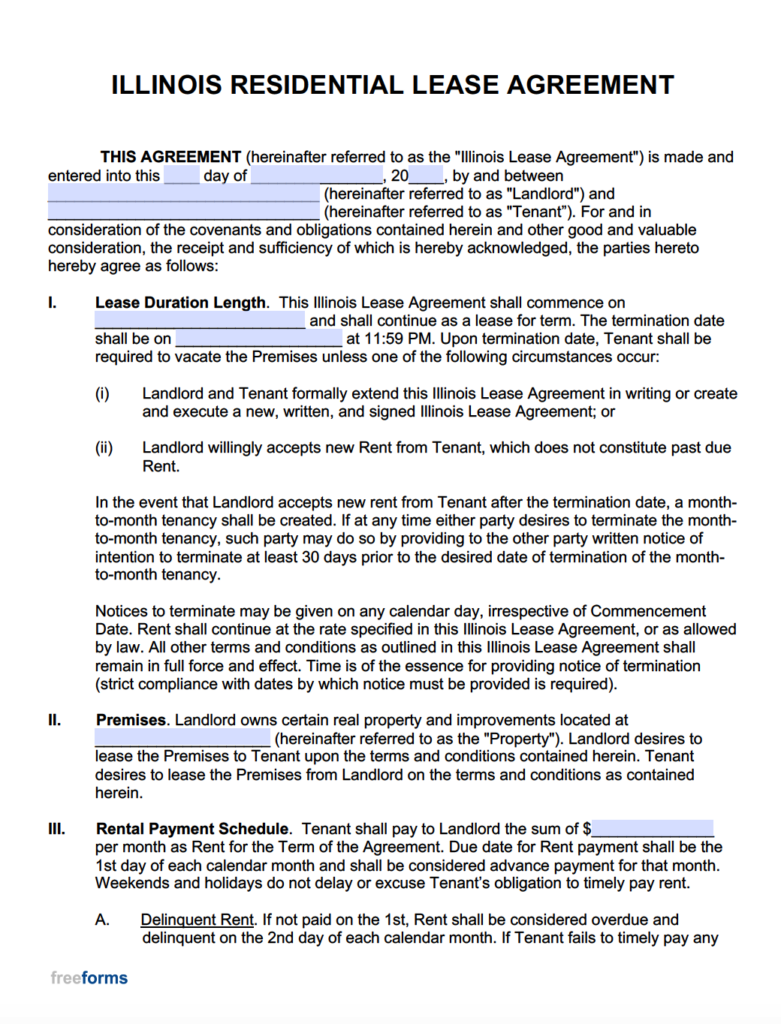 Illinois Lease Agreement (Free) 2021 Official PDF Word