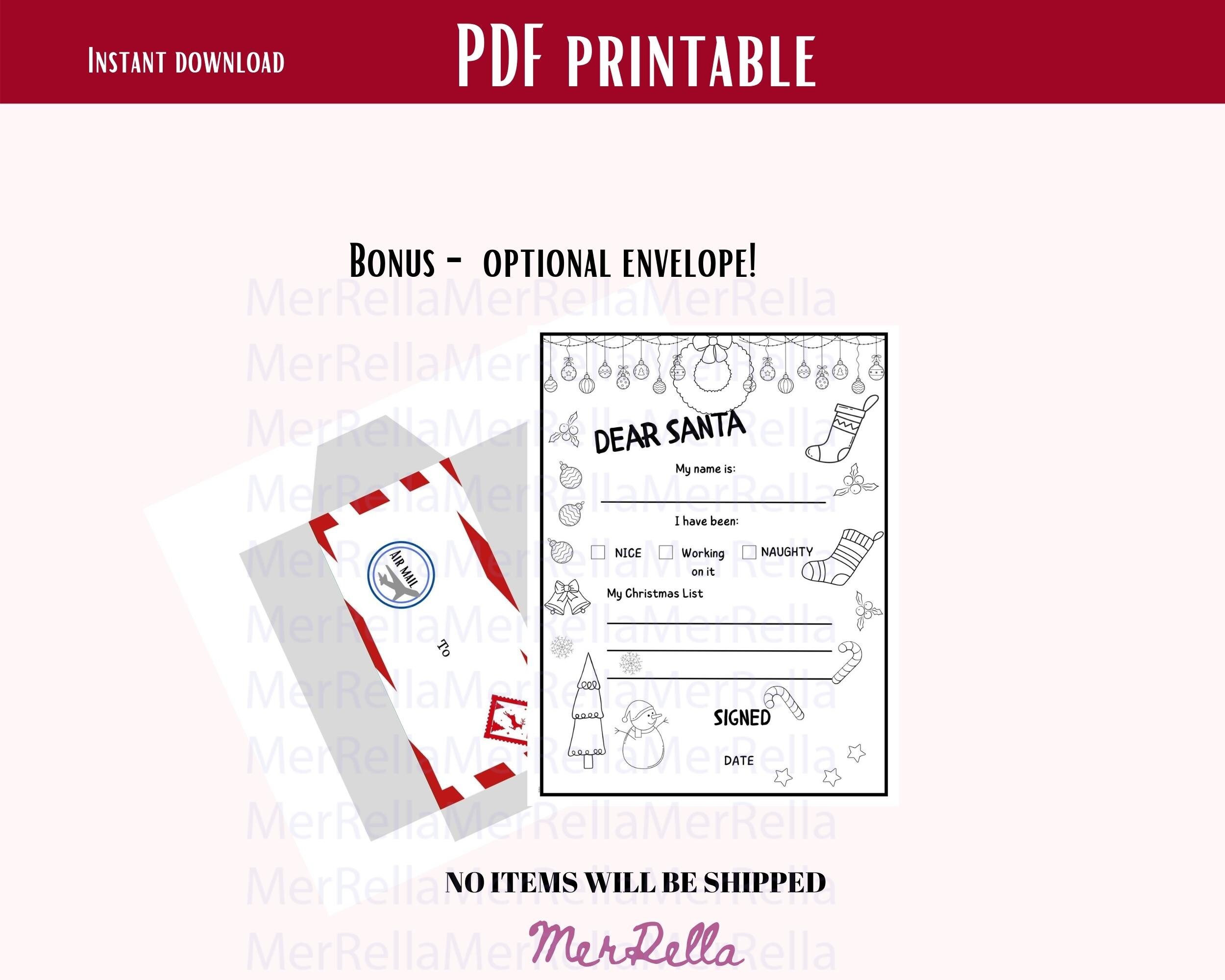 Letter to Santa Printable Coloring Page Christmas Wish List (PDF) Etsy