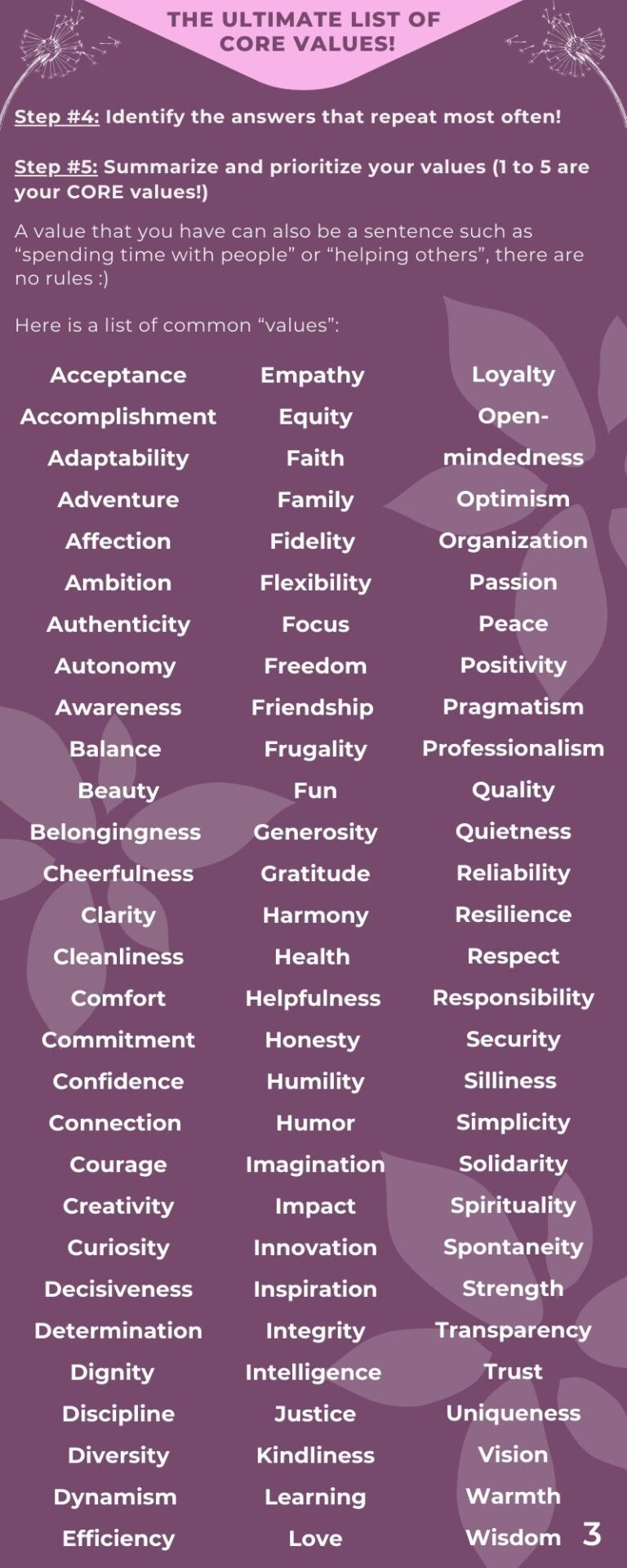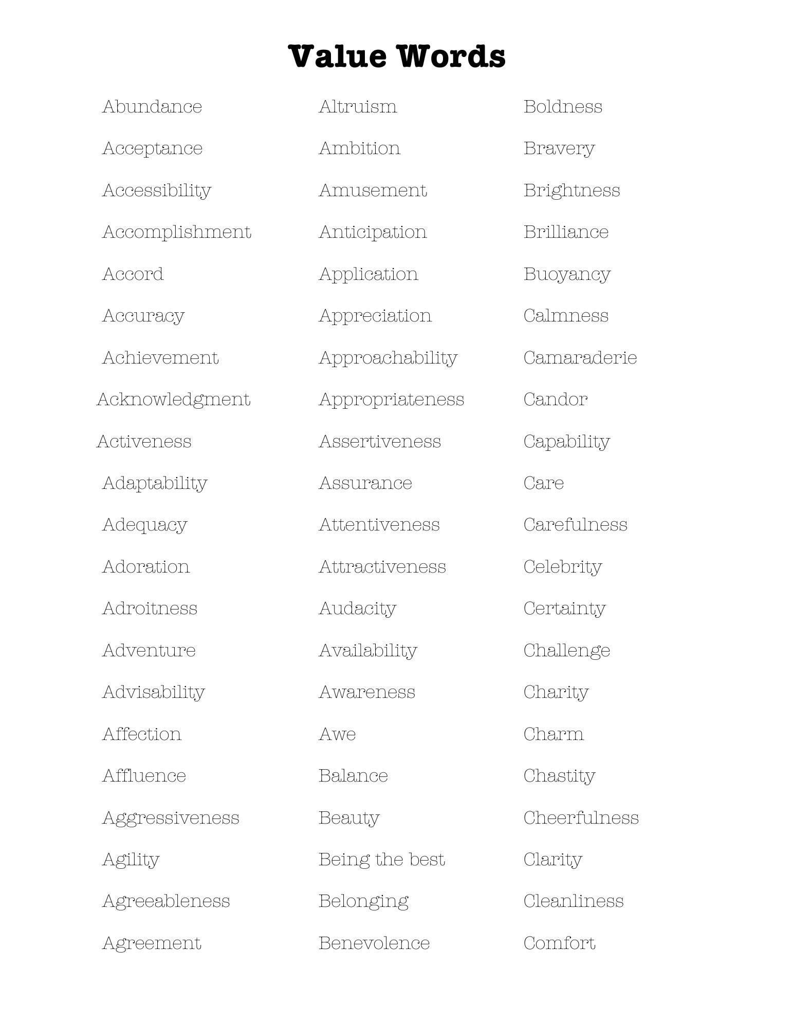Core Values List Lifecoachingtools Core Values List Hausdekor
